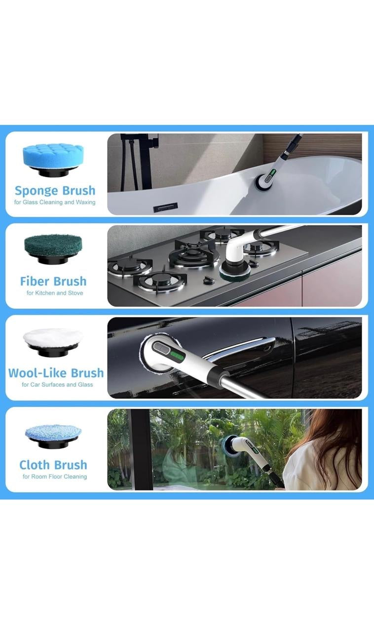 Tackle every corner of your home effortlessly! From bathtubs, tiles, kitchen stoves, and sinks to windows and floorsβ€”this scrubber comes with 9 versatile brush heads designed for different cleaning needs. The free wall hook makes storage neat and hassle-free.